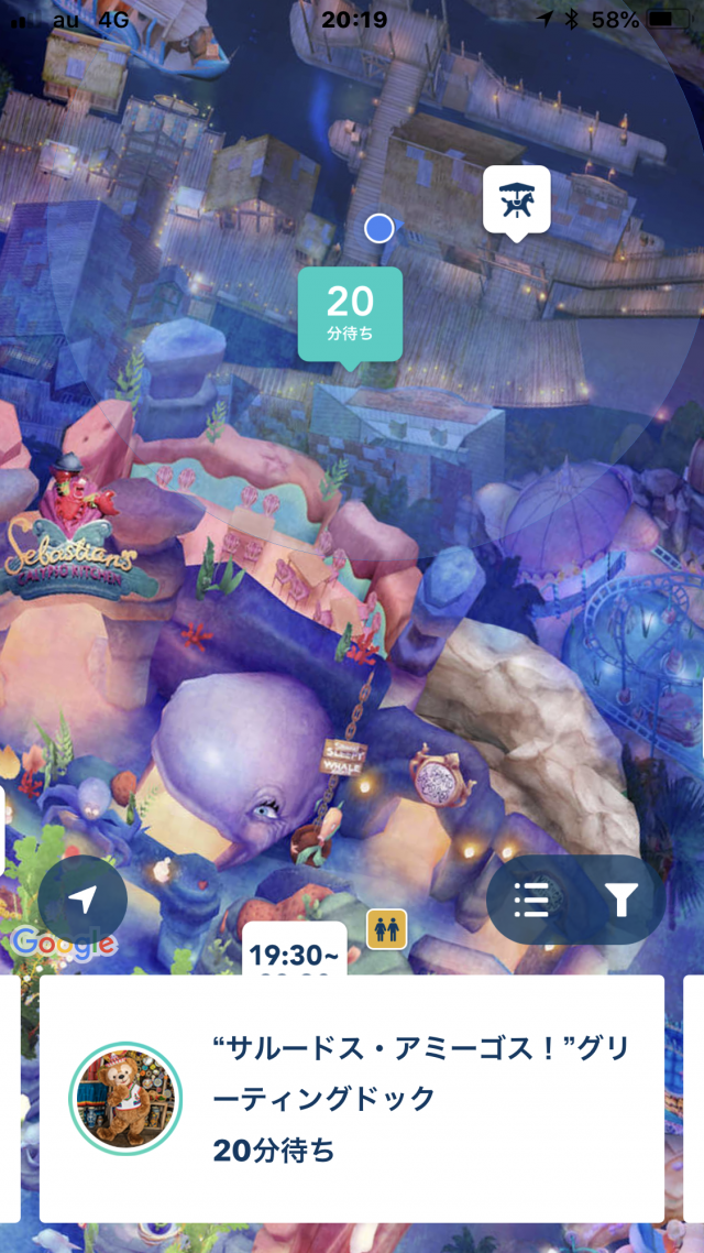 この時の表示は20分待ちでしたが、15分くらいで会えました。